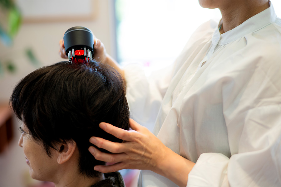 毛穴の奥に詰まった汚れや皮脂を丁寧に取り除き、頭皮の状態を整えます。これにより血行促進による育毛促進や近赤外線LEDの効果も高まります。