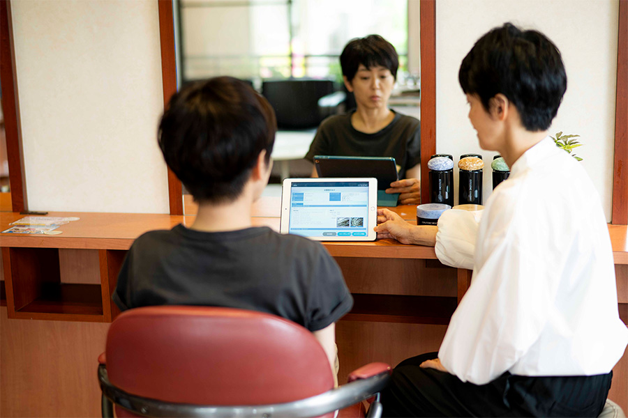 まずは知るところから!お悩みを解消する前に頭皮・お肌の状態を調べます。あなたの頭皮の状態に合わせて使う商材を選び、効果を高めます。