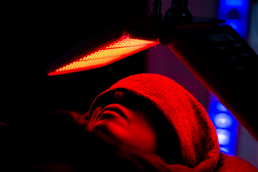 論文に裏付けされた発毛効果が期待できるLEDを照射します。毛乳頭細胞や、その他の細胞を活性化させていきます。