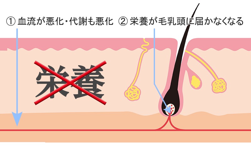 毛母細胞の機能低下という